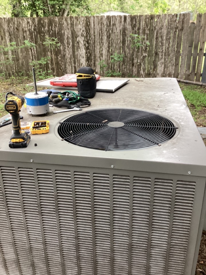 Its hard to see in the photo, but the fan motor is very rusted and you can also see a streak running down the side of the motor. This is oil from the motor. That means that the motor can fail at any time.