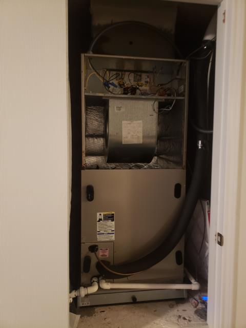 Demand HVAC service on air conditioning system. Water was leaking on the floor in the hallway. Coming from mechanical closet. Fitting was not properly glued from previous contractor and had worked its way loose. Glued and working good now