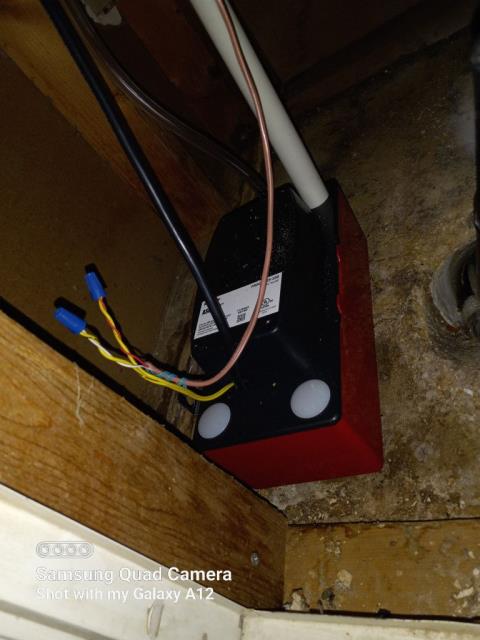 HVAC demand emergency service on a heat pump Air Conditioning system. Drain line was clogged beyond repair, leaking water from the closet into the hallway. Installed water pump system.