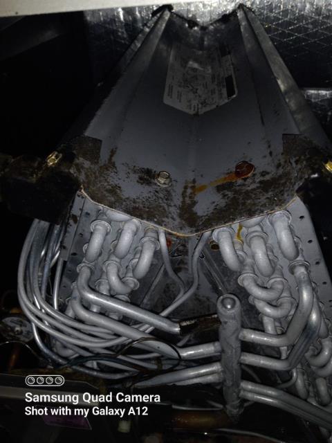 Annual Maintenance on a Lennox heat pump air conditioning system. Mold growth on the outside of the ductwork indicated it was not insulated very well during construction