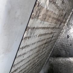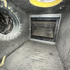 Residential dry vent cleaning. Removed old dryer venting that was falling apart and replaced it with metal dryer vent. House was having hot and cold spots in house. Looked at HVAC system and found that the indoor coil was dirty making the system struggle to keep up with cooling the house. Cleaning coil in place and air conditioner system is running more efficiently.
