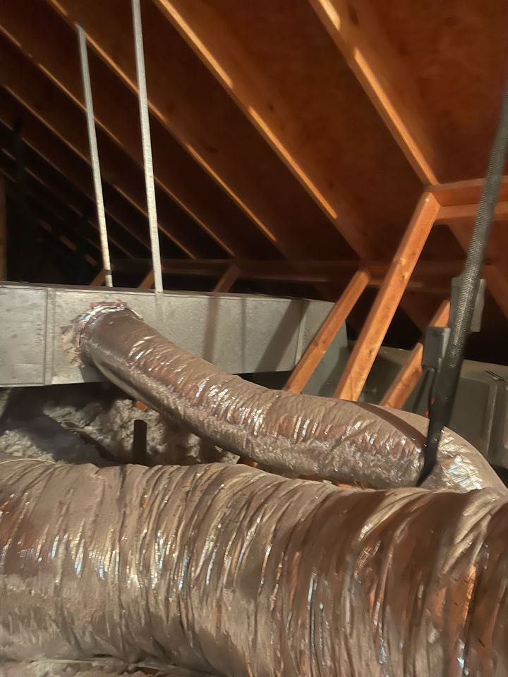 An oversized HVAC System in an attic that is not spacious, hot and not well ventilated. This has caused mold and rust issues throughout the duct system causing a lot of IAQ issues