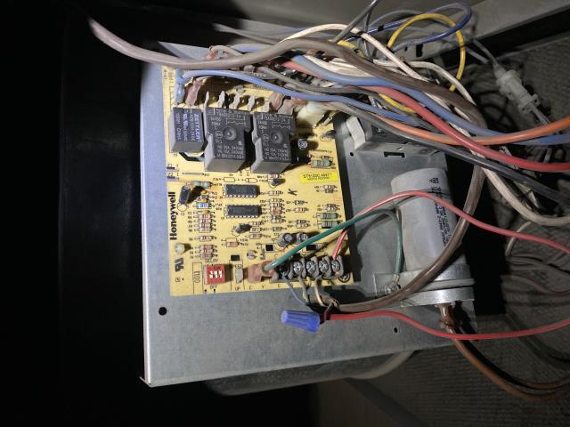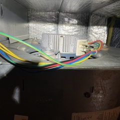 Heater inspection and maintenance on Maytag heat pump air conditioning system.