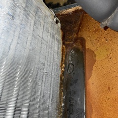 Residential air conditioner system is leaking water. HVAC drain line repair.
