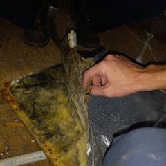 Residential a/c system is blowing air but not cooling air. HVAC repair. While inspecting noticed part of the insulation was falling off the panel. Used foil tape to secure the insulation back to the panel.