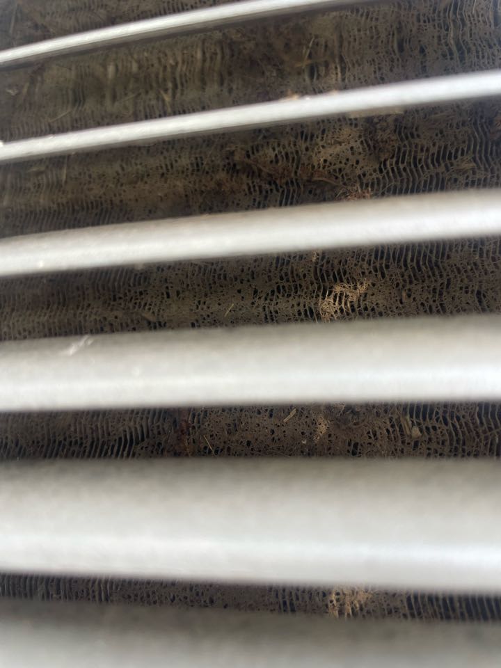 A very dirty condenser coil like this will significantly reduce the live of your HVAC system. Regular maintenance on your air conditioning system is very important