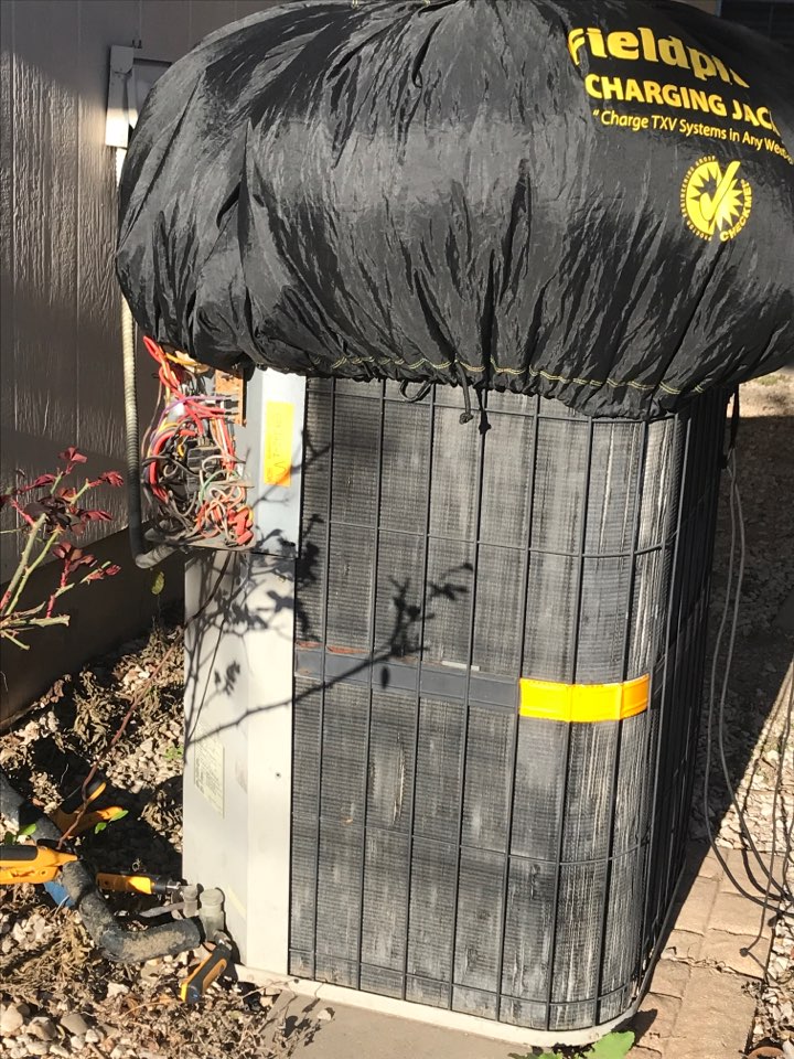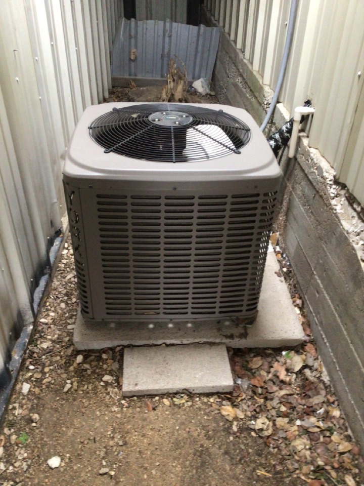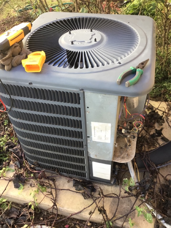 Spring maintenance on a Goodman AC unit. Inspection of system and washing condenser coil.