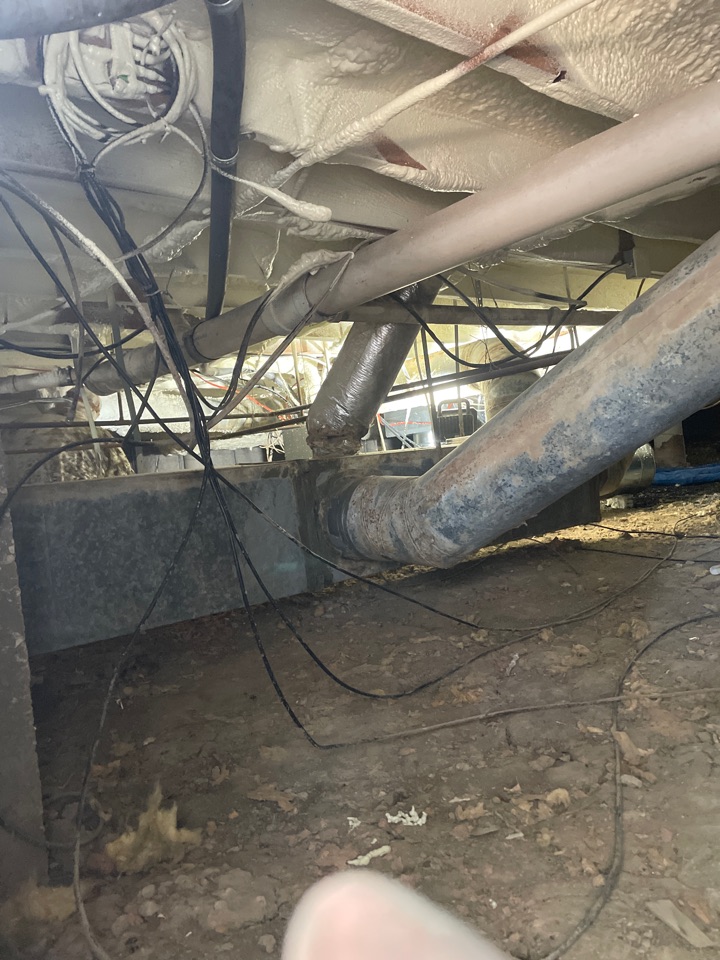 Removed old moldy insulation off from metal ductwork and replaced fiberglass insulation with spray foam. Homeowners noticed the mildew smell coming from running AC system and had AirOne come out and fix ductwork. Removed old flex ductwork with new metal ductwork to improve air flow inside house and to decrease air loss.